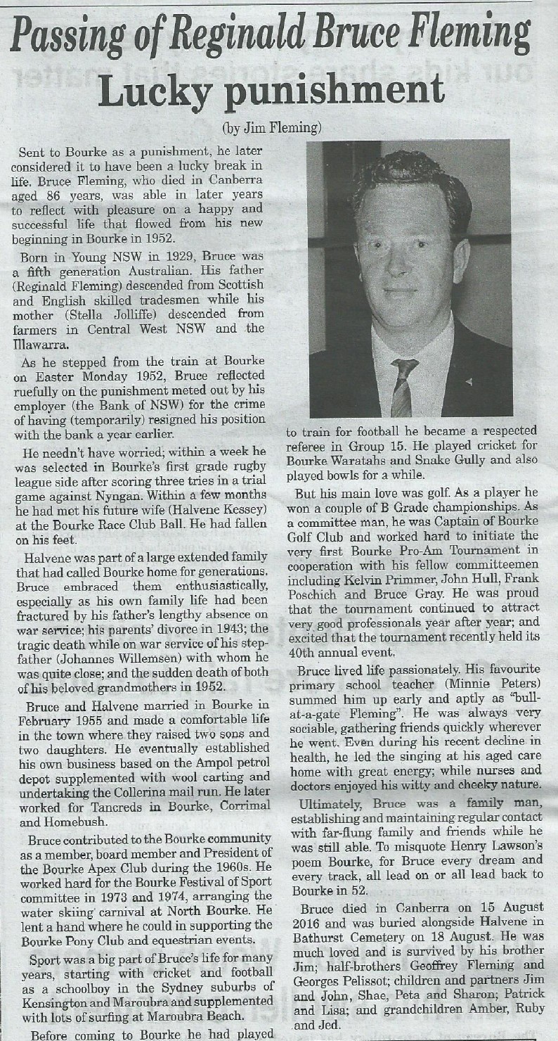Obituary of Bruce Fleming, as published in the Western Herald newspaper of Bourke, NSW