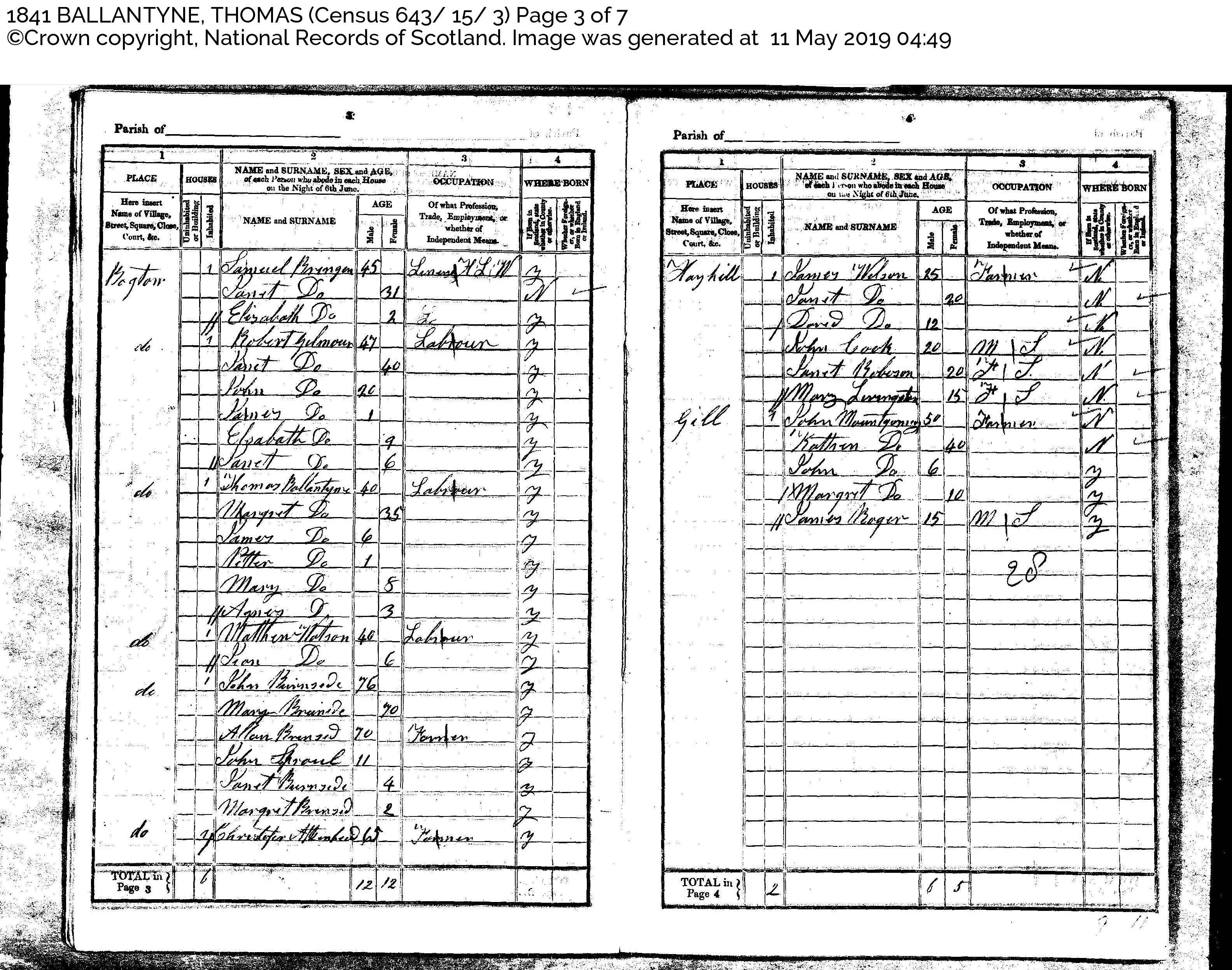 Thomas Ballantyne on the 1841 census at East Kilbride
