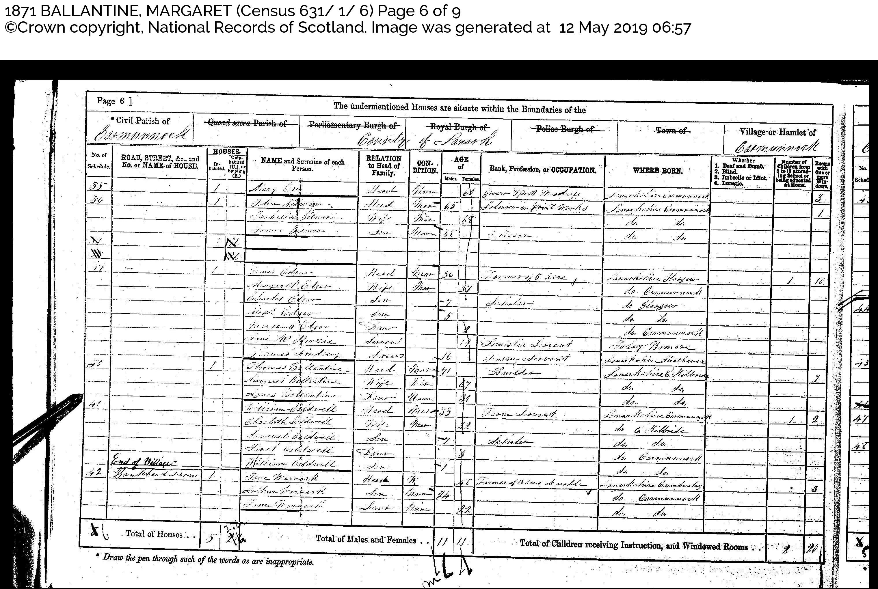Thomas Ballantyne, builder, 1871 census at Carmunnock, Lanark