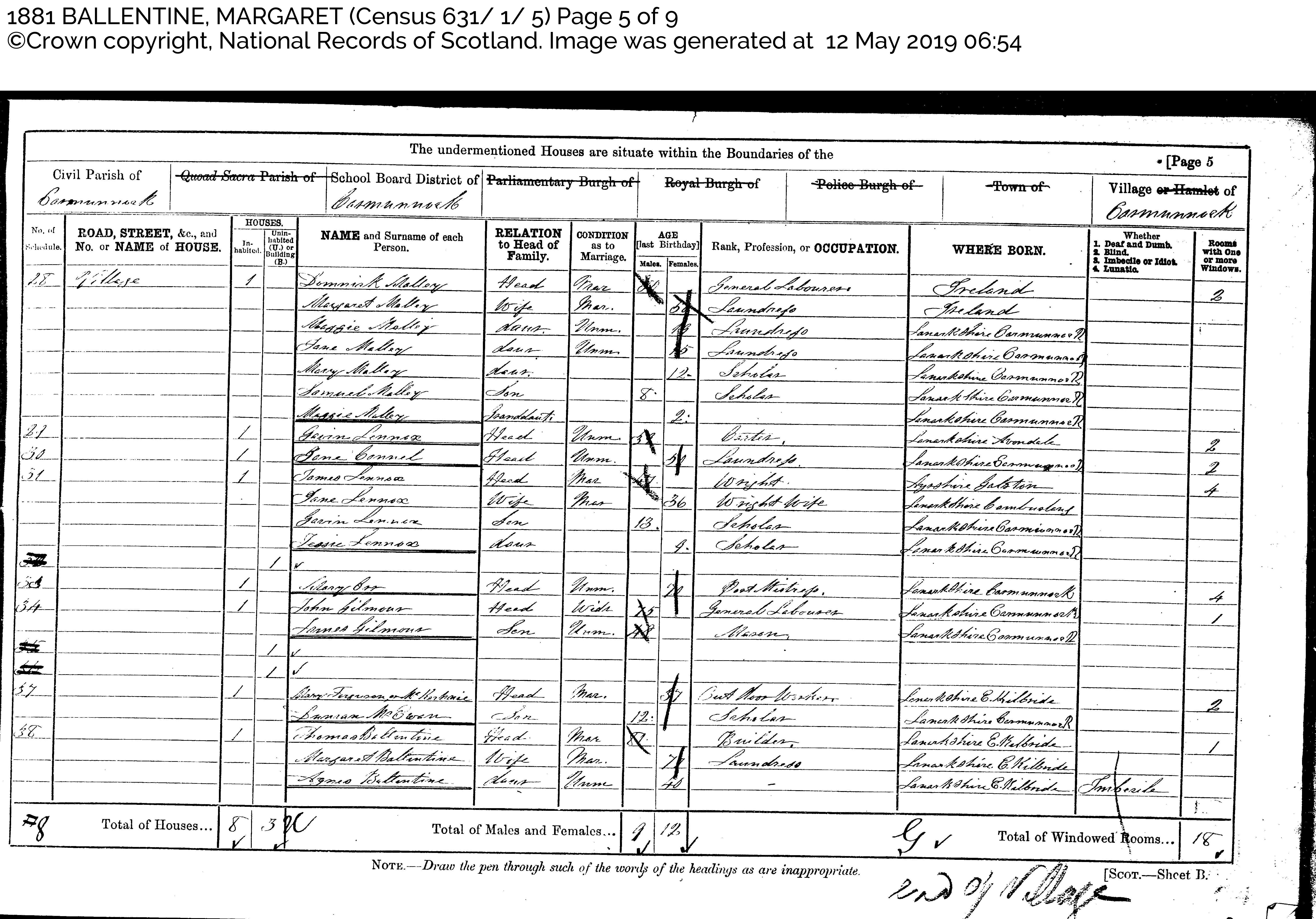 Thomas Ballantyne family of Carmunnock on the 1881 census