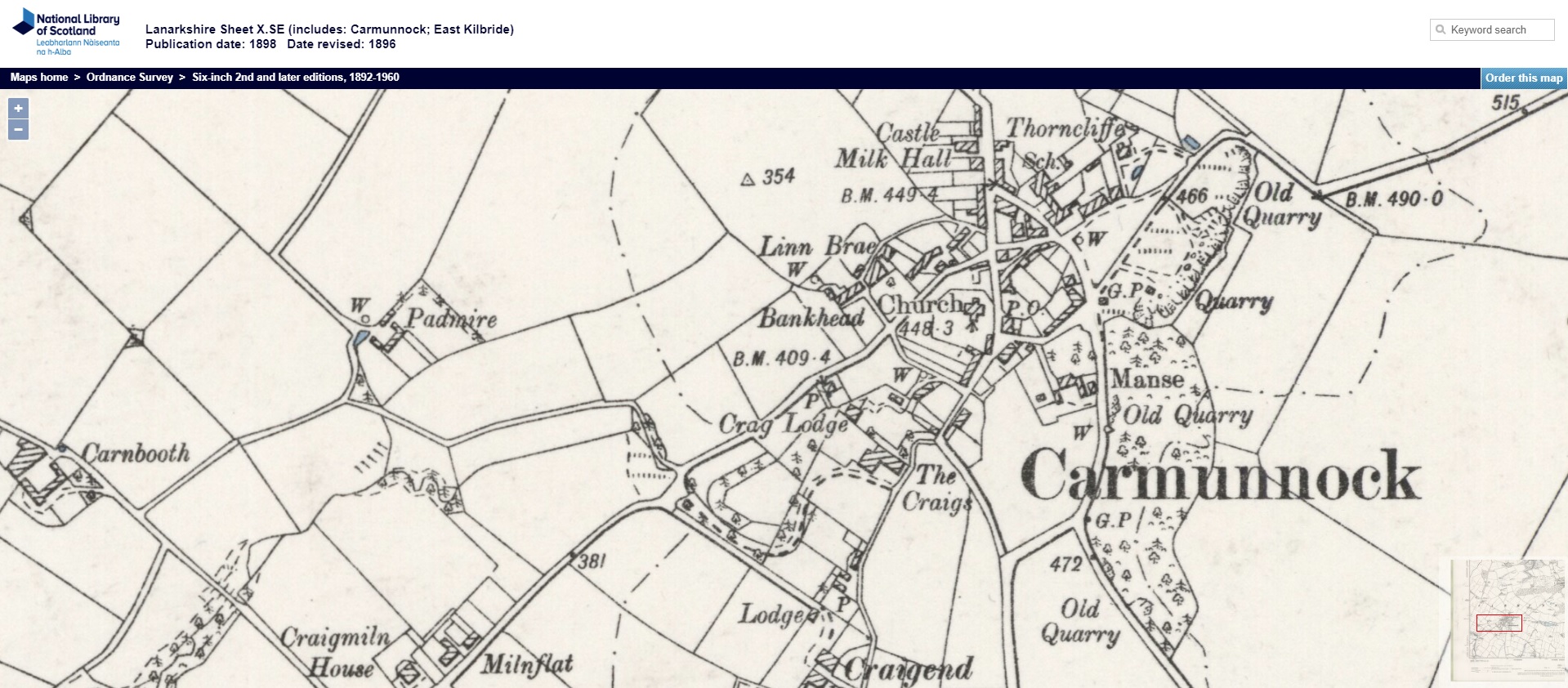 Carmunnock village, where Thomas Ballantyne (mason) lived with his family in 1861